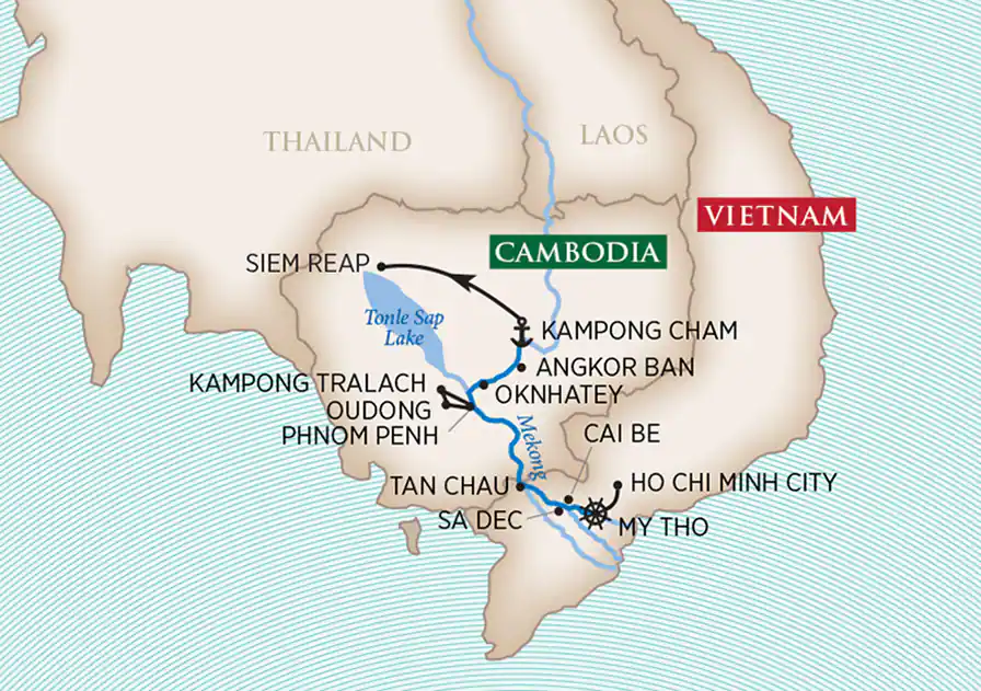 Day 8, KAMPONG CHAM - SIEM REAP. Your cruise concludes in Kampong Cham, where you disembark and motorcoach transfer to Siem Reap. (B)